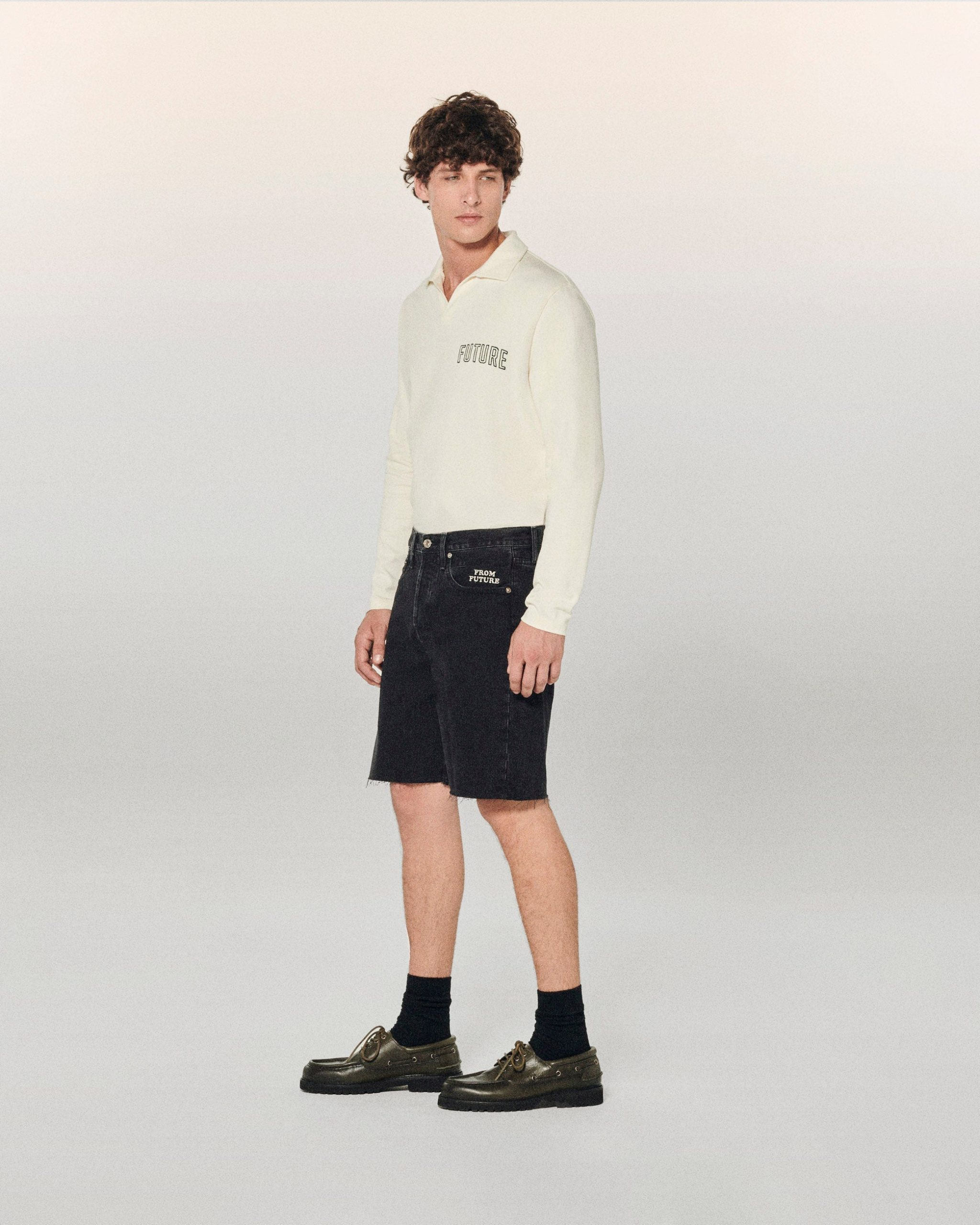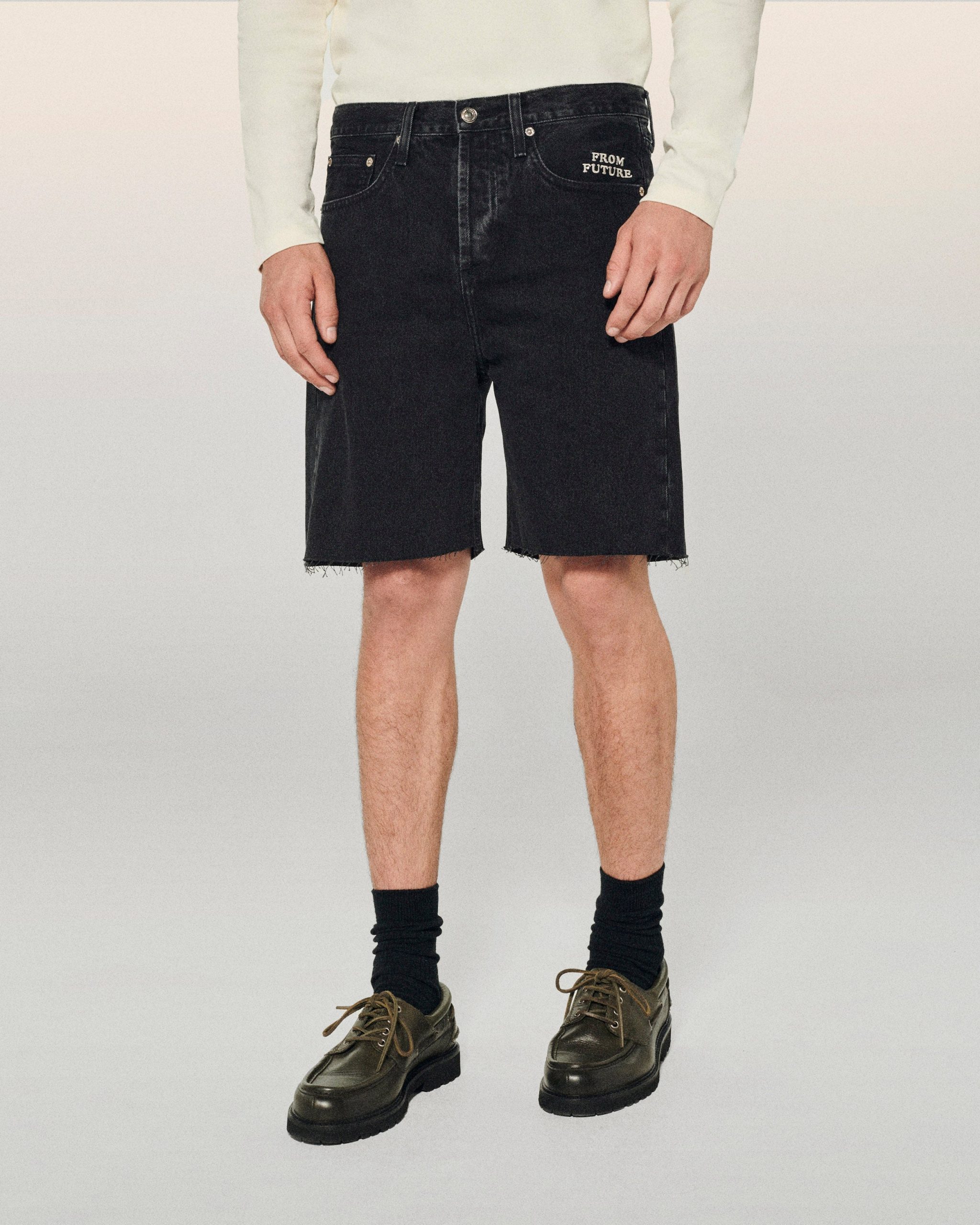 Meet Jack, the solid-coloured denim short. Regular fit. Details: FROM FUTURE semi-hidden embroidery and logo patch on the back. Raw hemline.