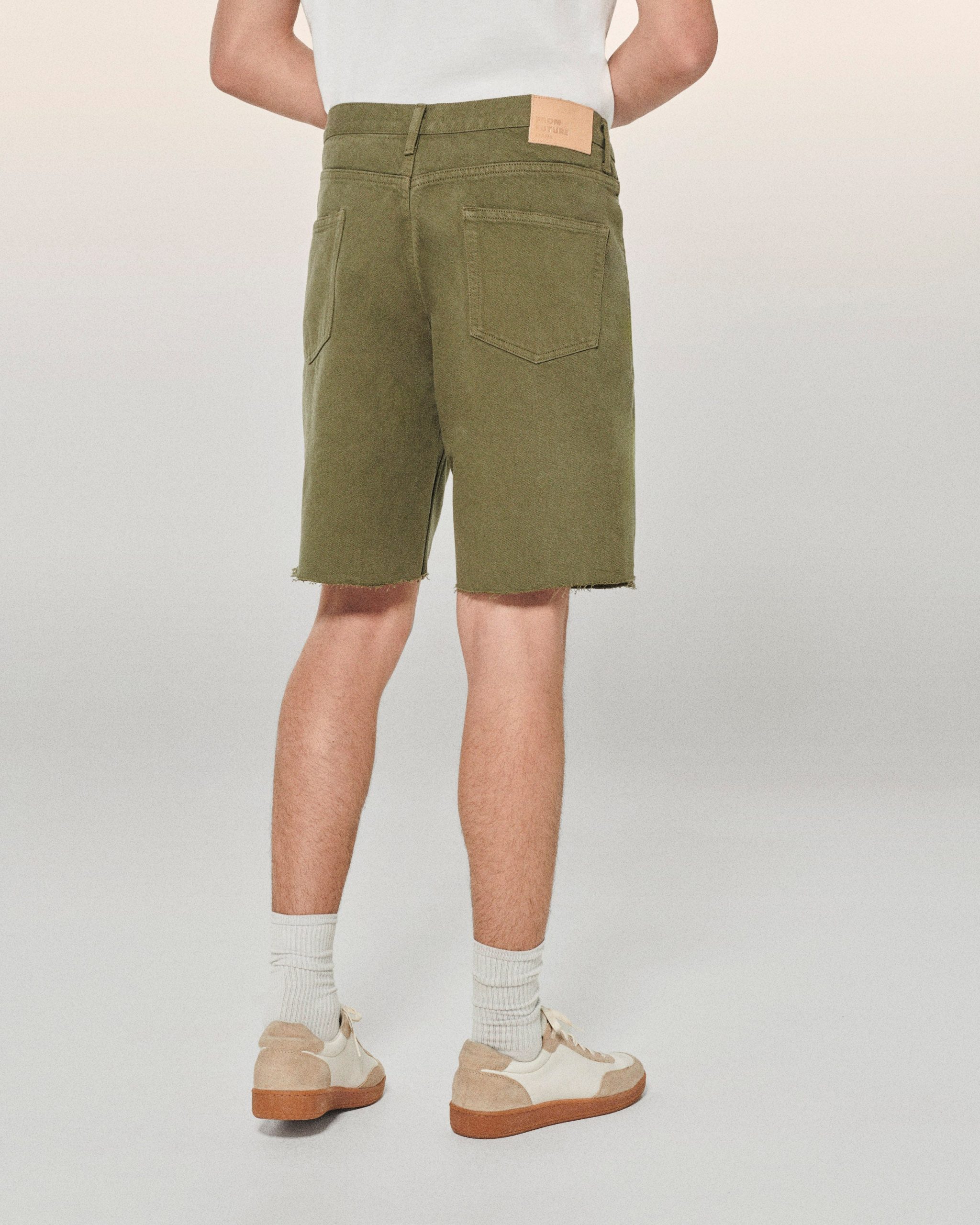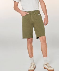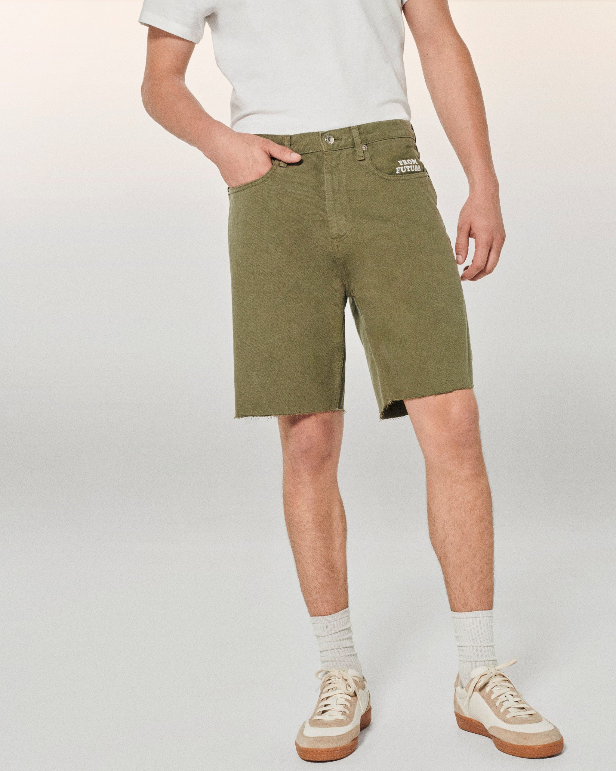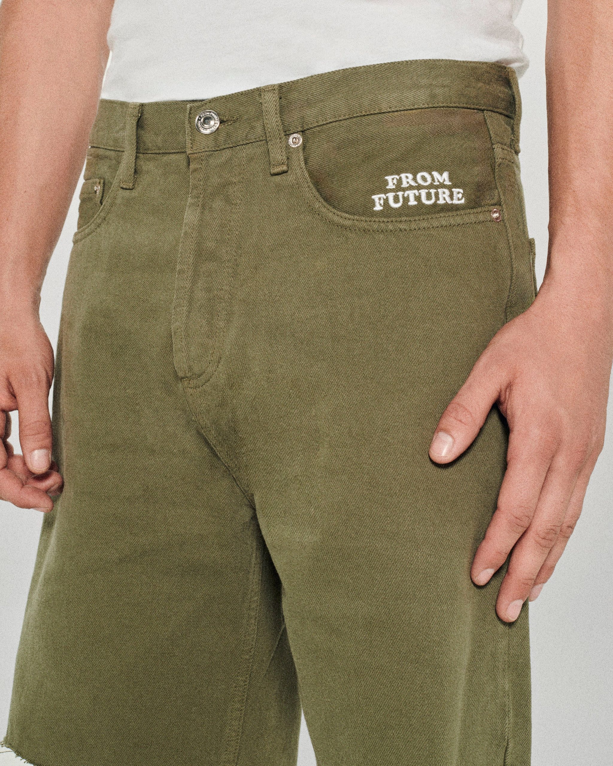 With a button closure, these denim Bermuda shorts feature pockets, a raw edge and a “From Future” embroidery.