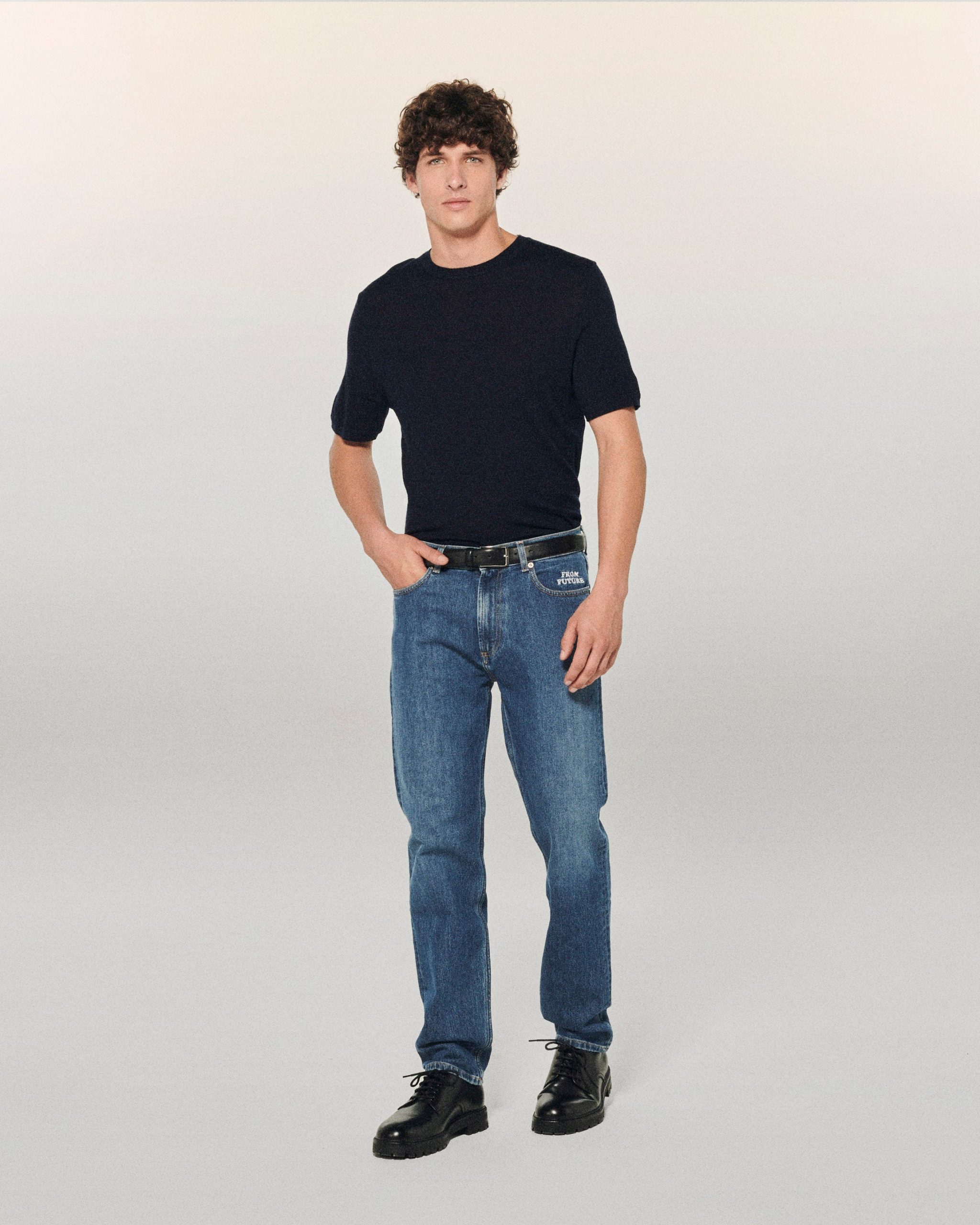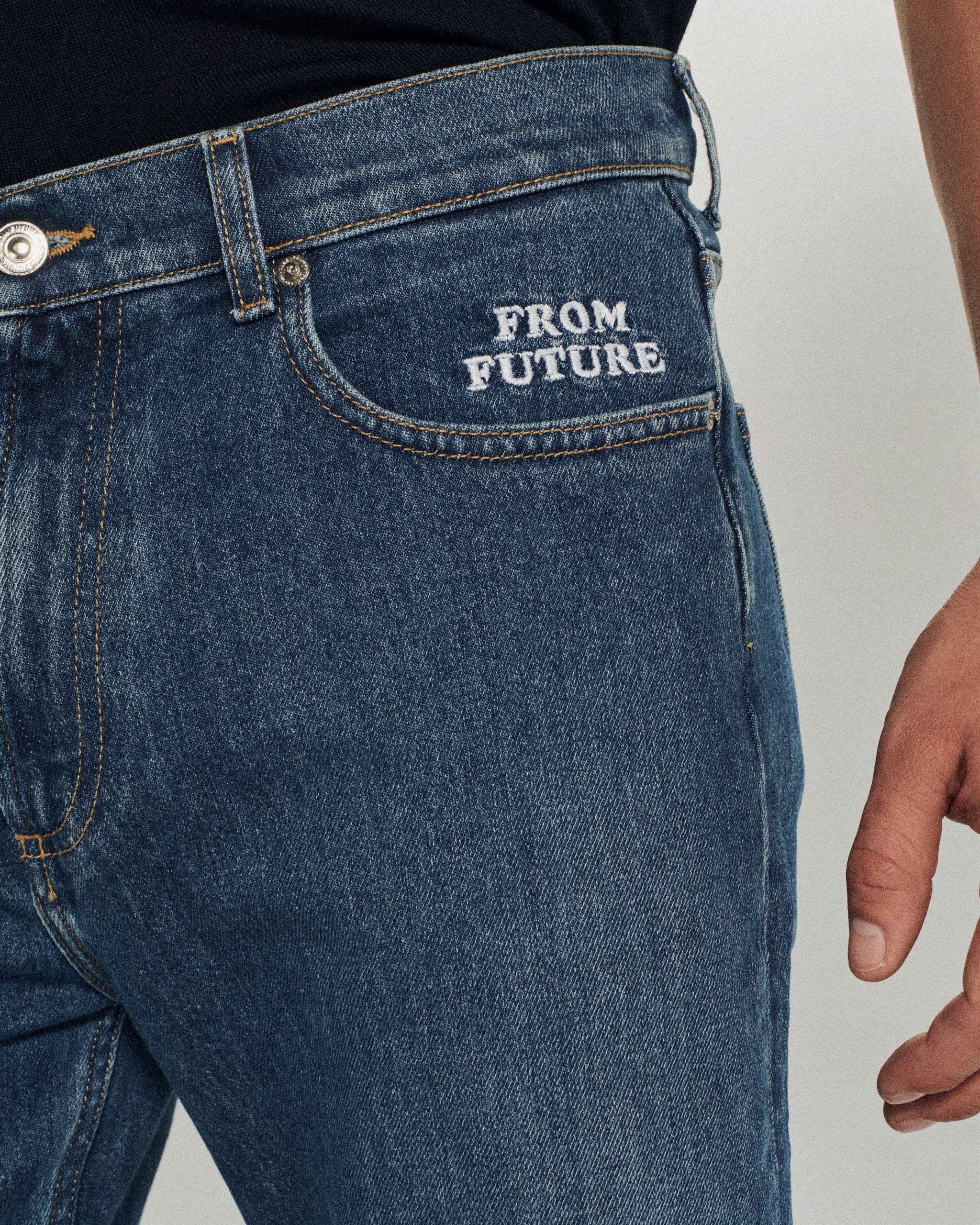 FROM FUTURE jeans are made from recycled cotton from industrial fabric scraps (69% cotton, 25% recycled cotton, 5% polyester, 1% elastane). The colors have been worked with care thanks to the eco wash system: an ecological washing process that drastically reduces the consumption of water, energy and chemical products.