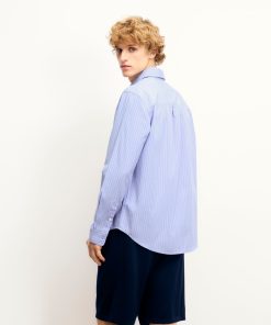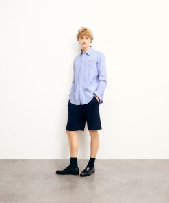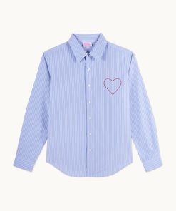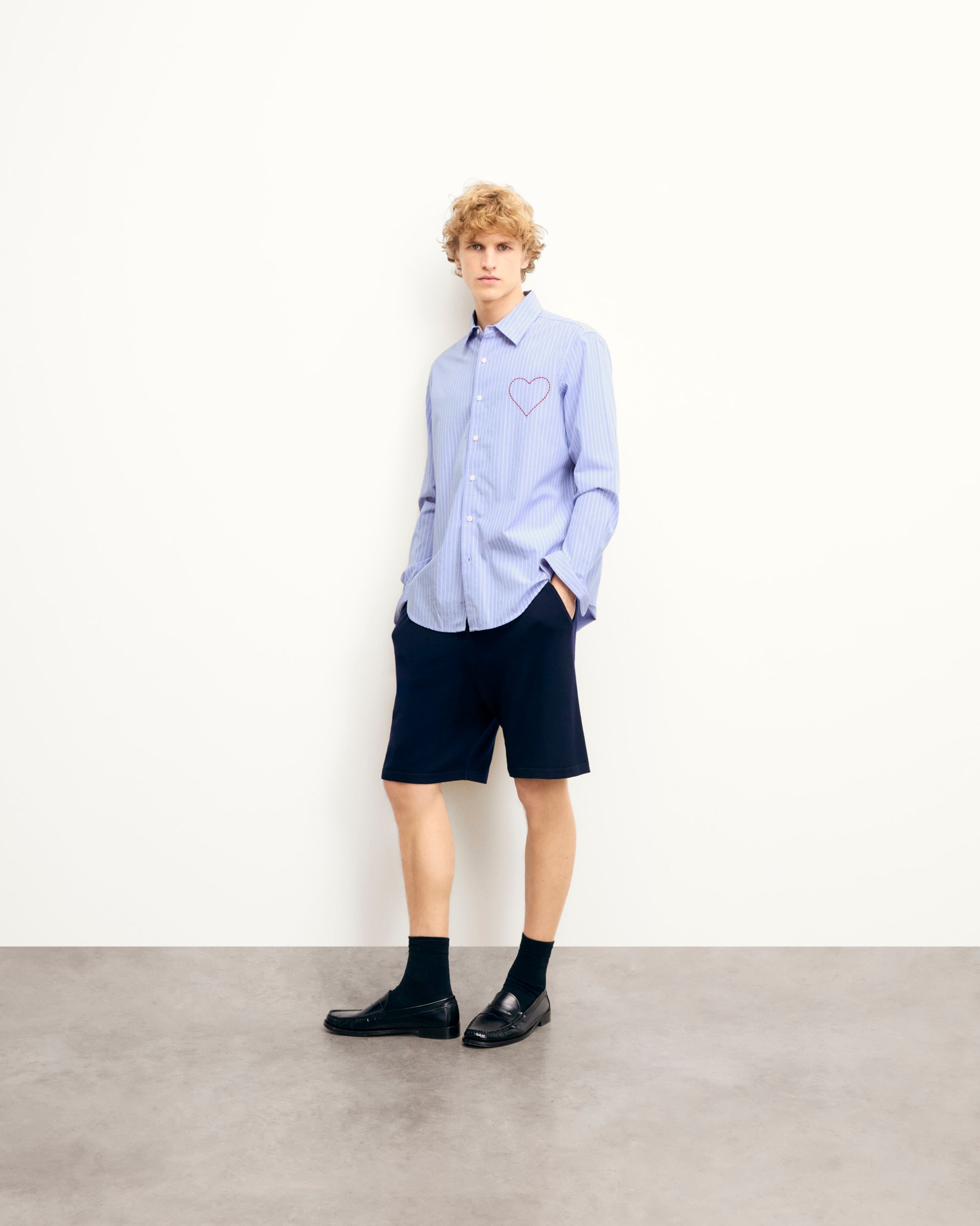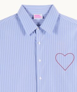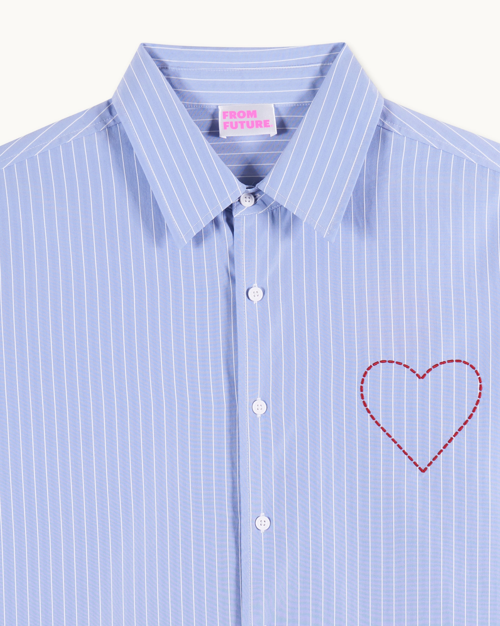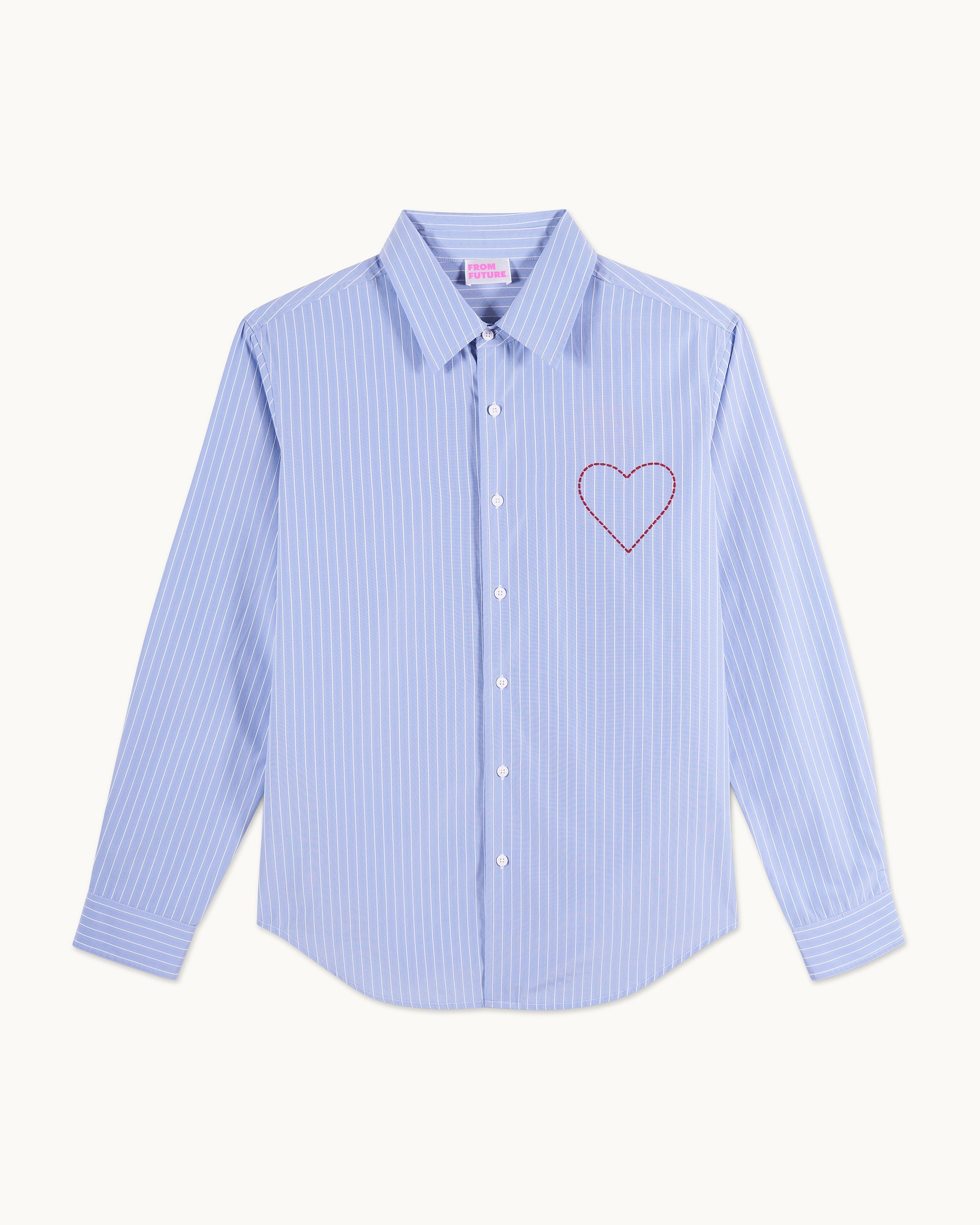 Elevate your look with this striped shirt, adorned with an embroidered and topstitched heart on the chest. Its classic shirt neck, long sleeves, buttoned closure and cuffs create a sophisticated silhouette.