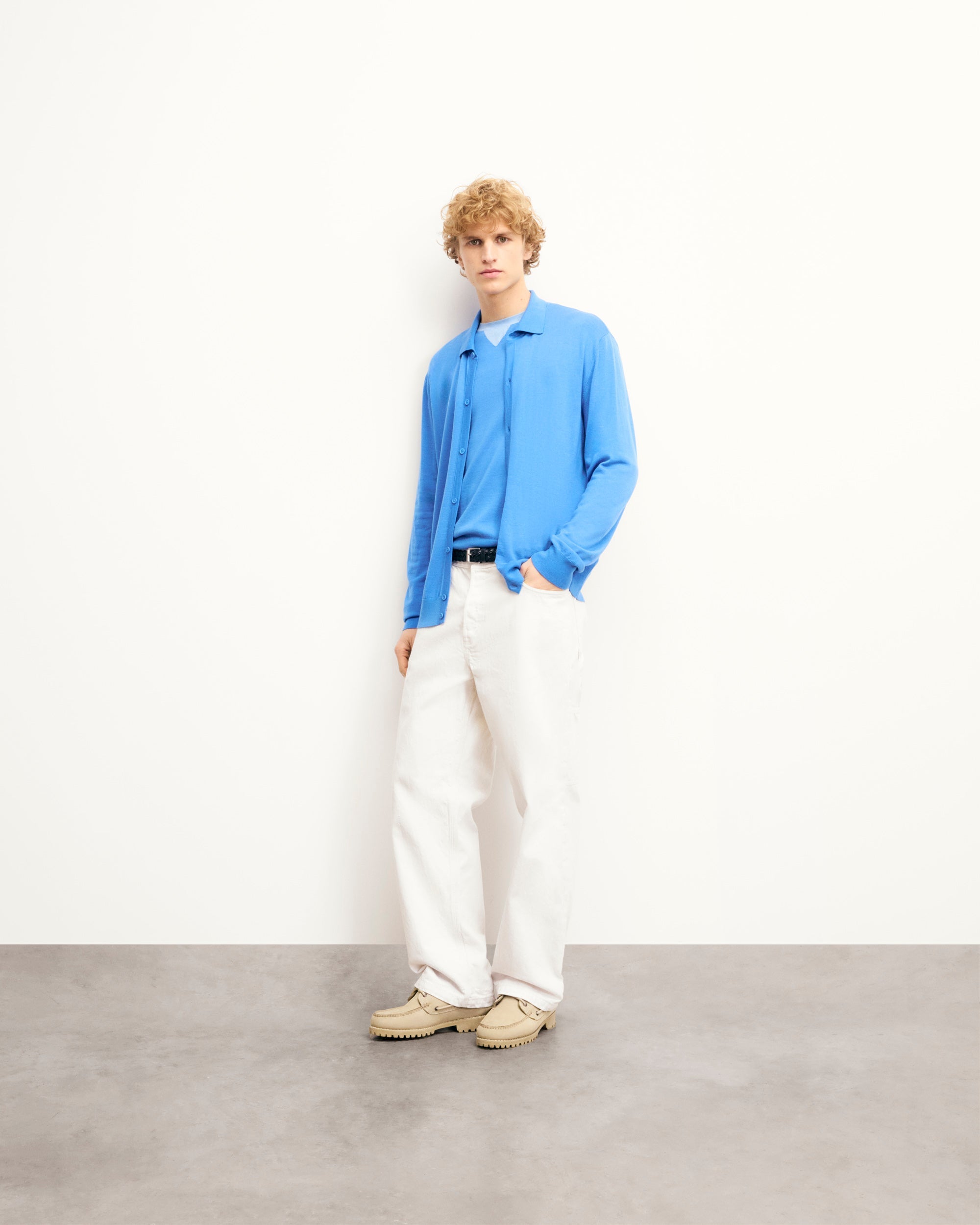 100% merino wool.Merino wool has the particularity of being temperature regulating. It is therefore ideal for wearing next to the skin in spring and summer.Hand washingFabric softener and bleaching prohibitedDo not tumble dryDry cleaning prohibitedIron at low temperature
