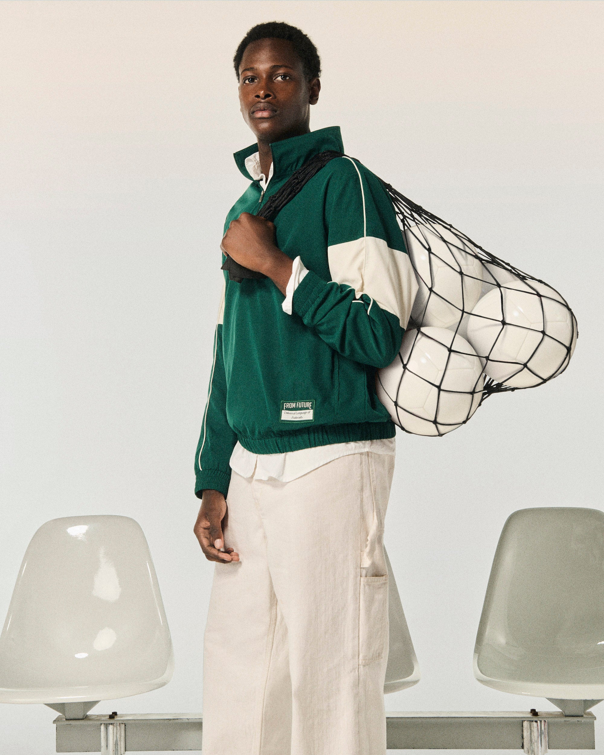 Line up for the future with this statement jacket. Featuring a zipped neck, long sleeves, and snug cuffs, it reveals a signature, contrasting piping and stripes. Team it with the matching shorts for a sporty-chic look.