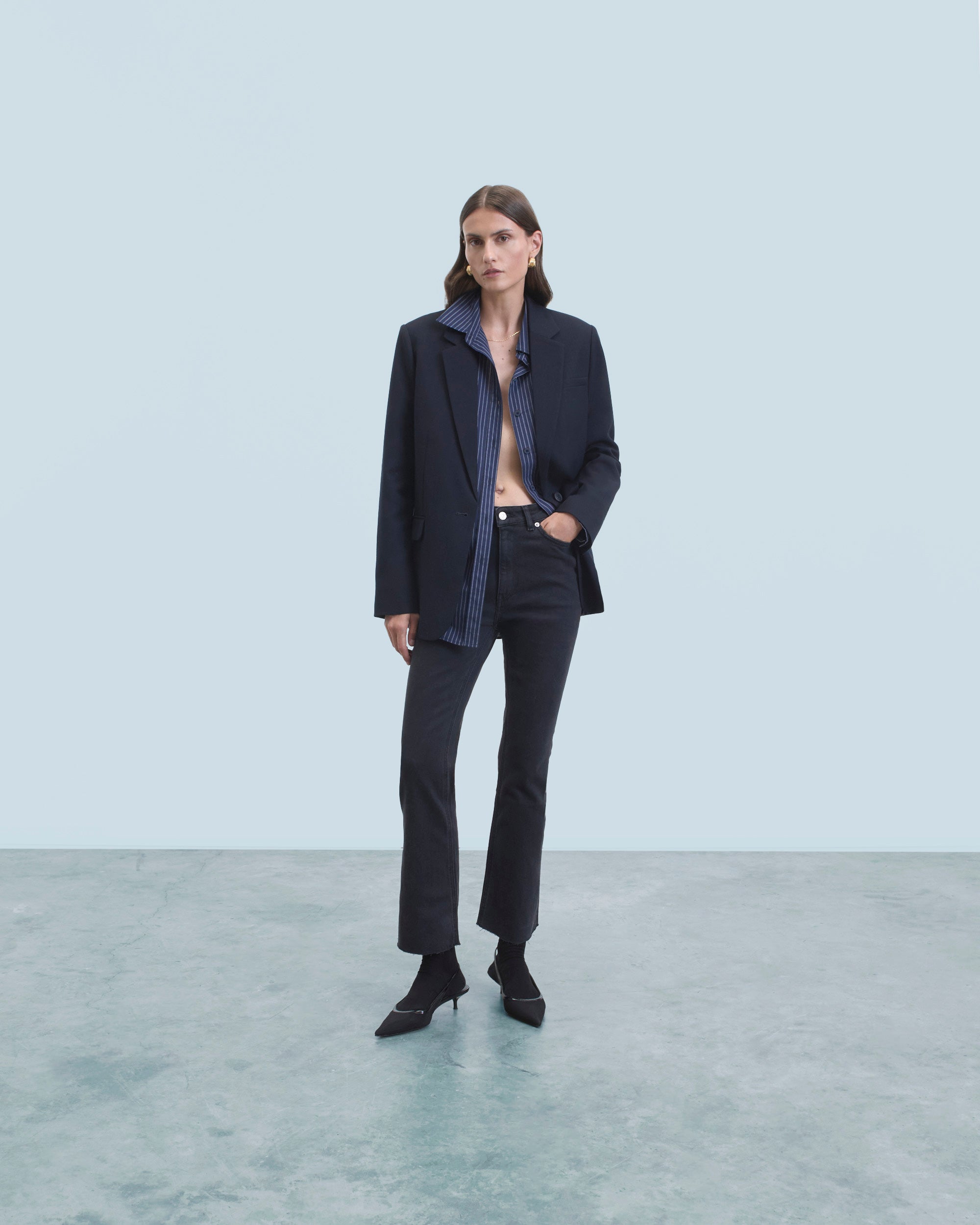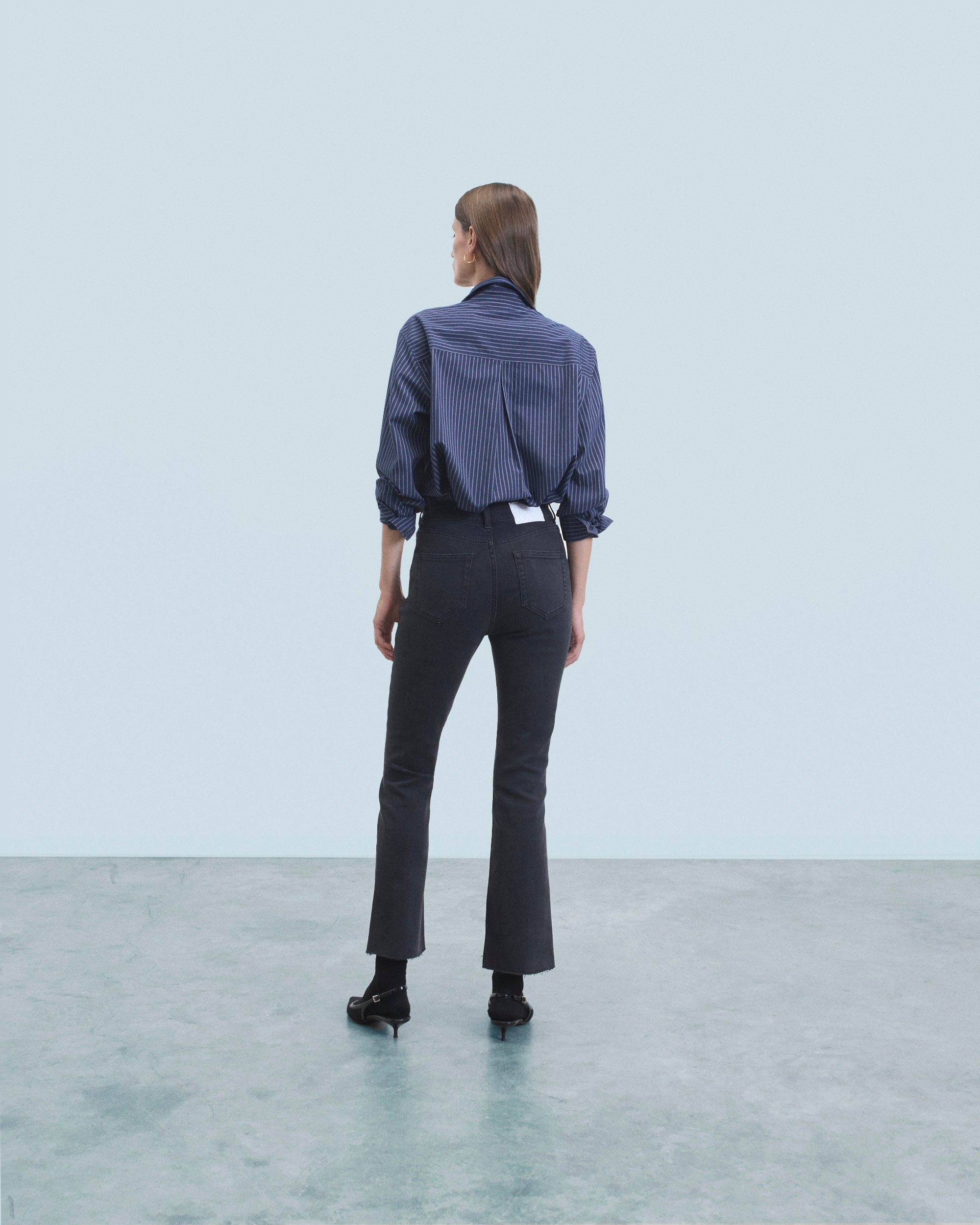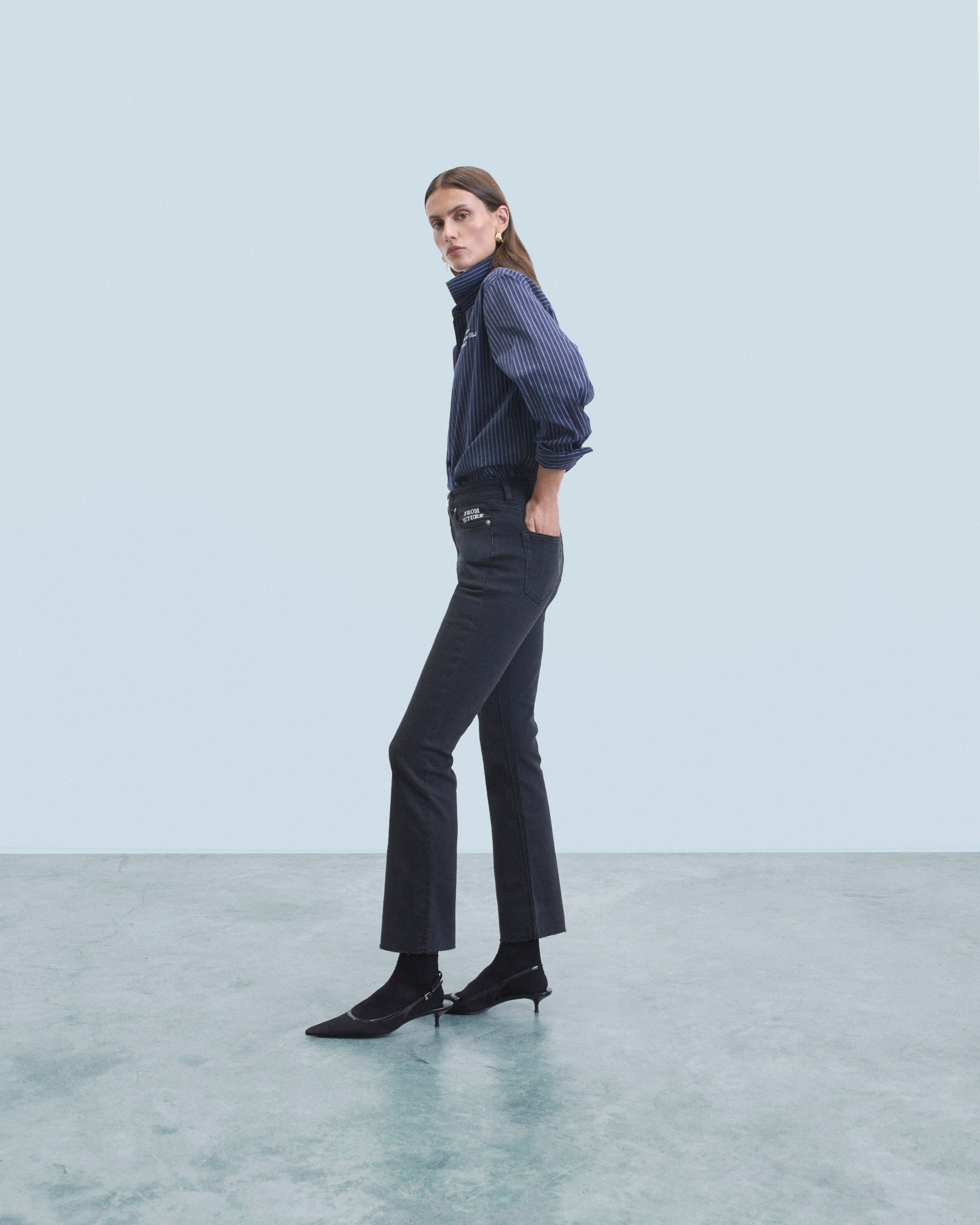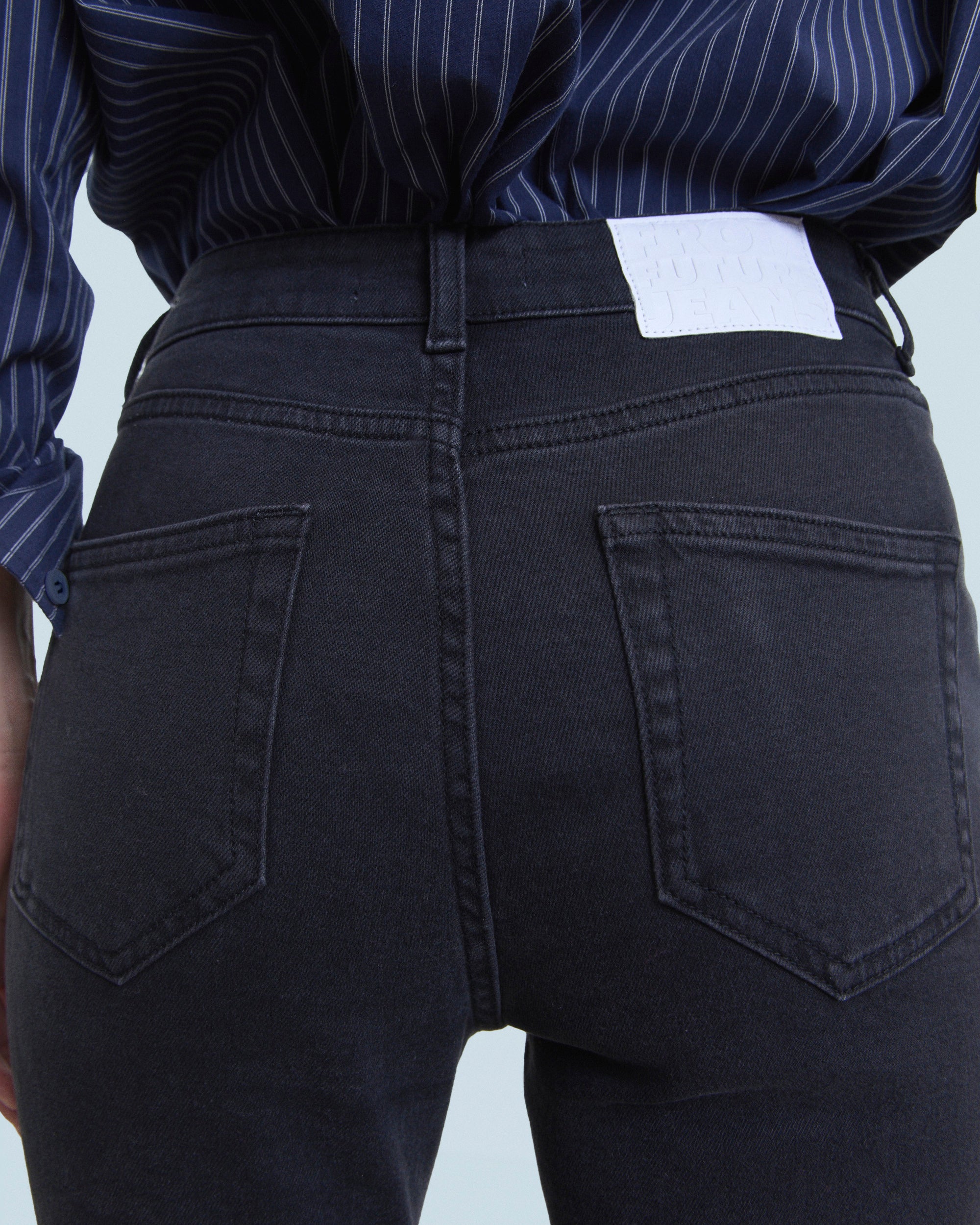 Meet Jude: the elegant bootcut with semi-hidden “From Future” embroidery detail on the left pocket. Length 7/8th. 5 pockets, high waist, metal button closure, straight leg hem. A good basic that you will wear all year round.