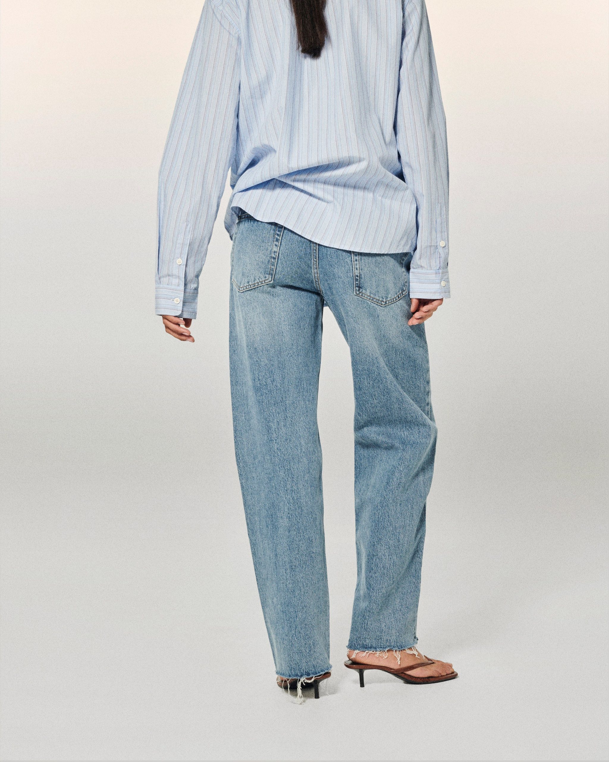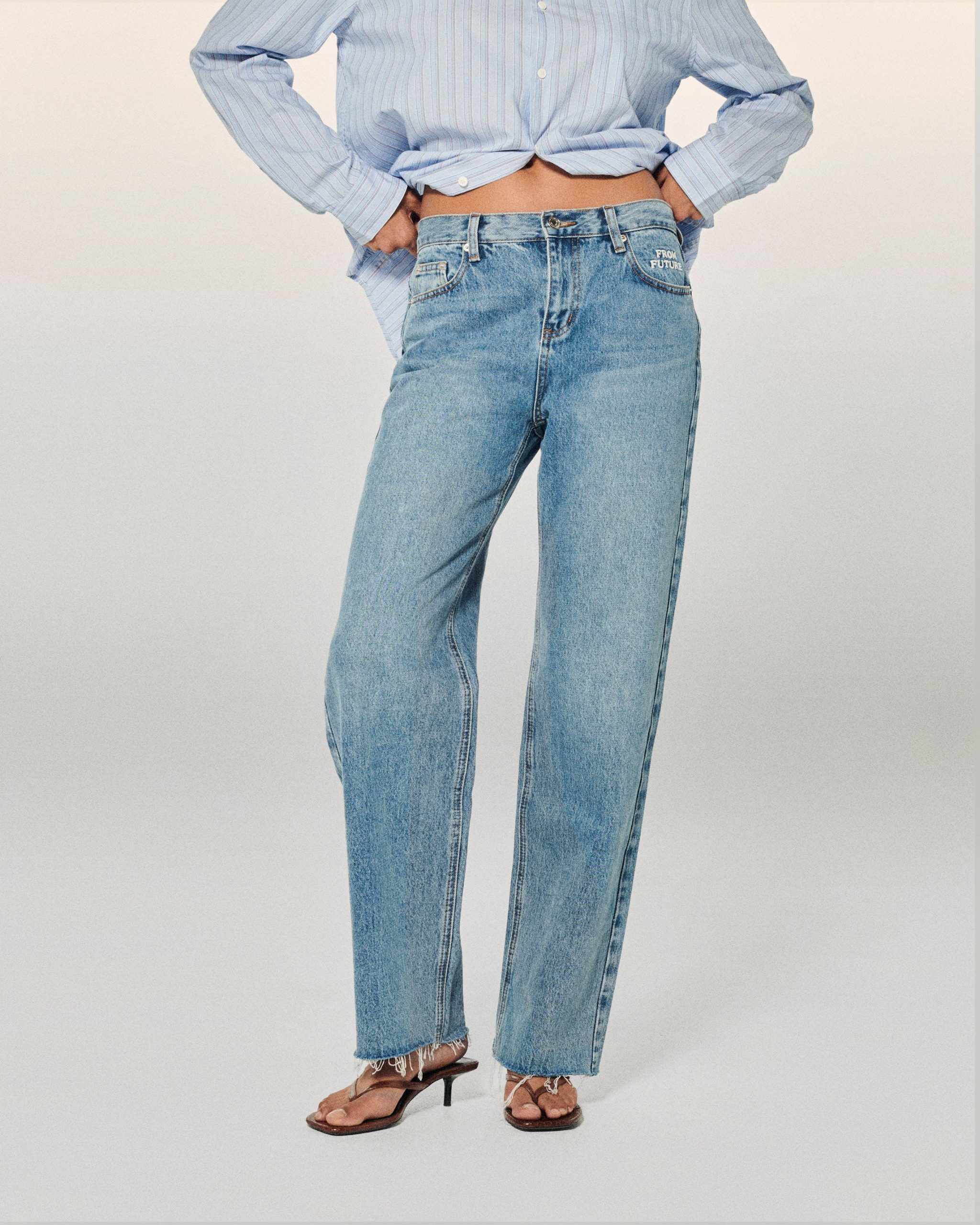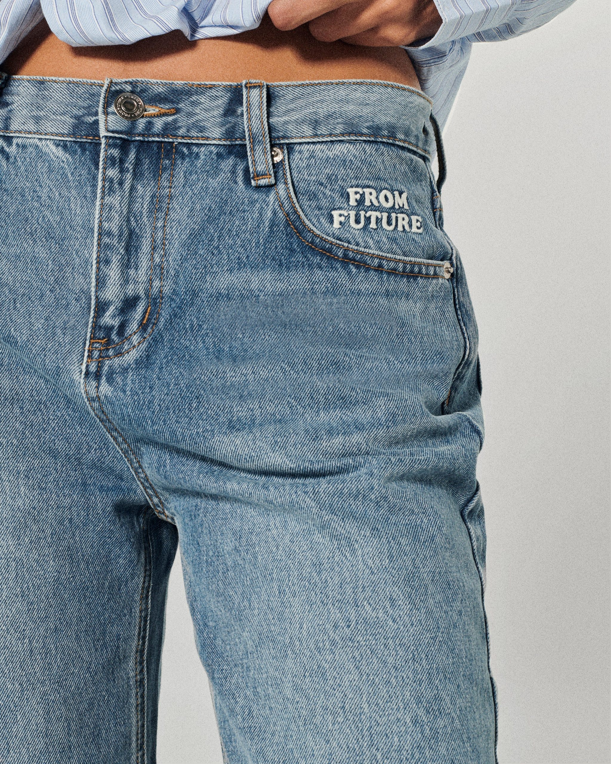 These baggy jeans have two pockets at the front and back and a zip and button closure. Its wide cut and futuristic details make it a must-have piece for a bold and structured silhouette. Easy to mix and match, it pairs with a flowing shirt or casual sweatshirt.