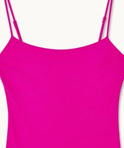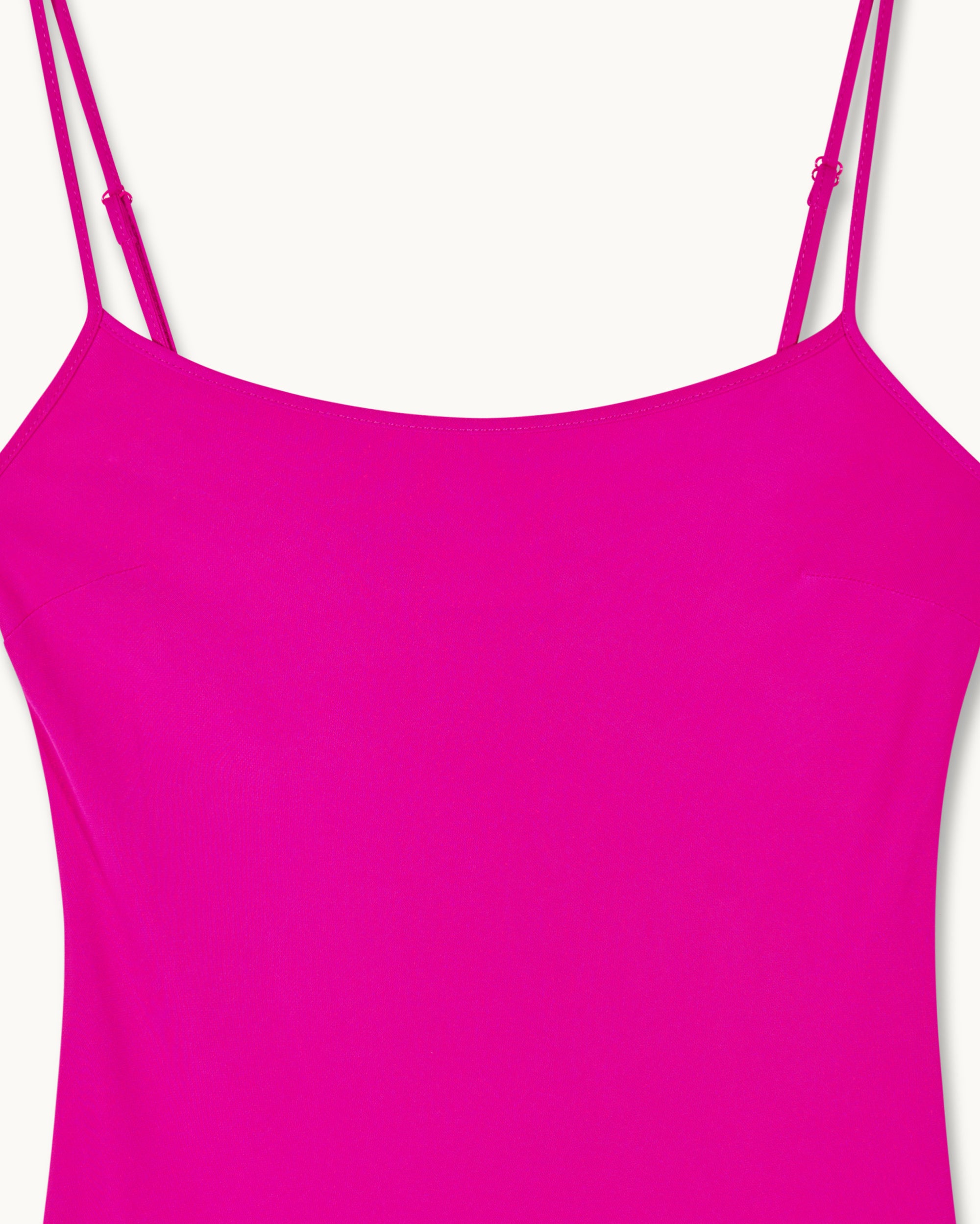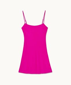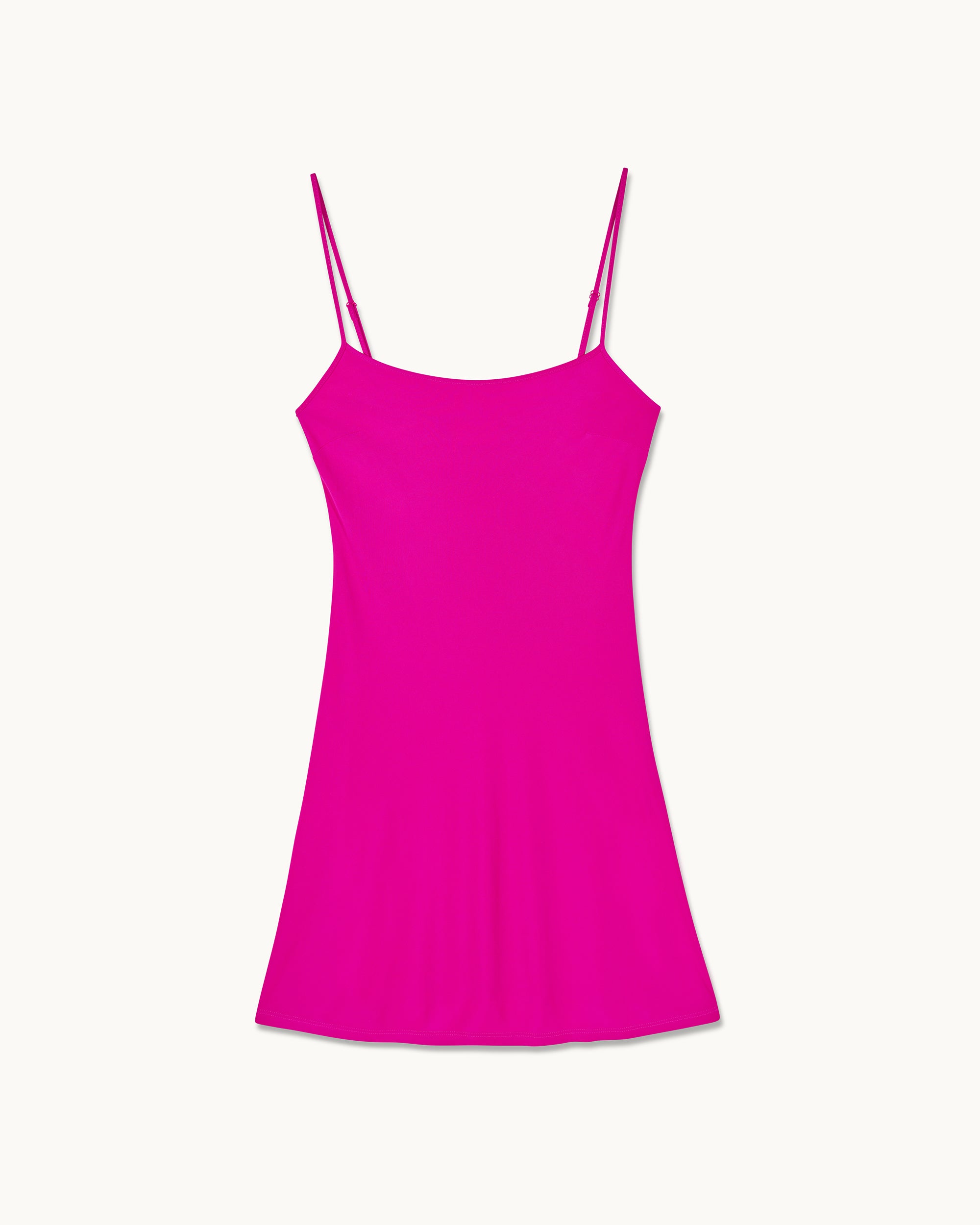 This short dress is enhanced by a pleated A-line skirt. Its thin adjustable straps and square neckline create a flattering and versatile look, perfect for pairing with sneakers or heels.