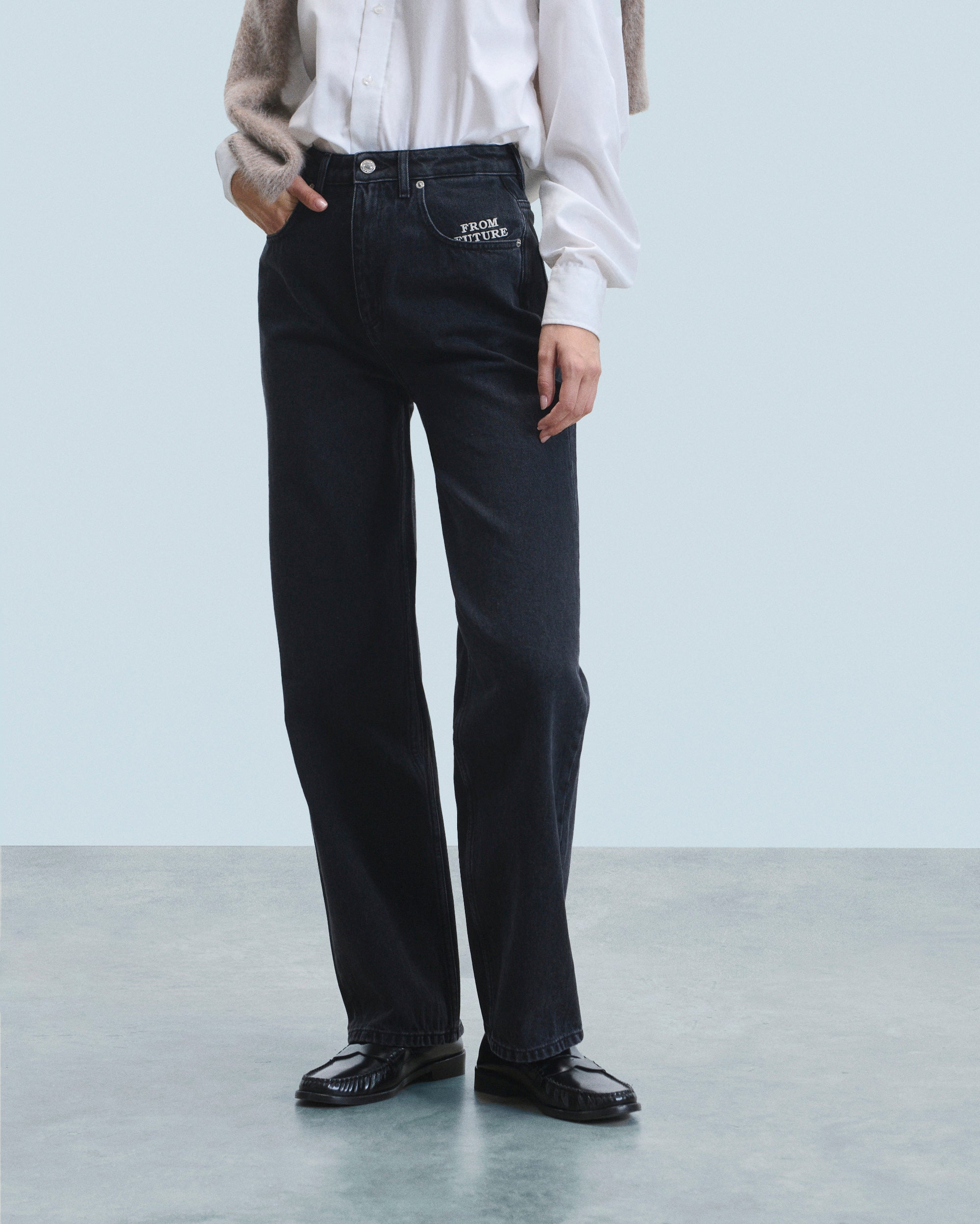 The perfect jeans. Semi-hidden “From Future” embroidery detail on the left pocket. Straight fit to make legs look longer without being too tight. A timeless pair of jeans you can wear all year round.