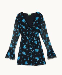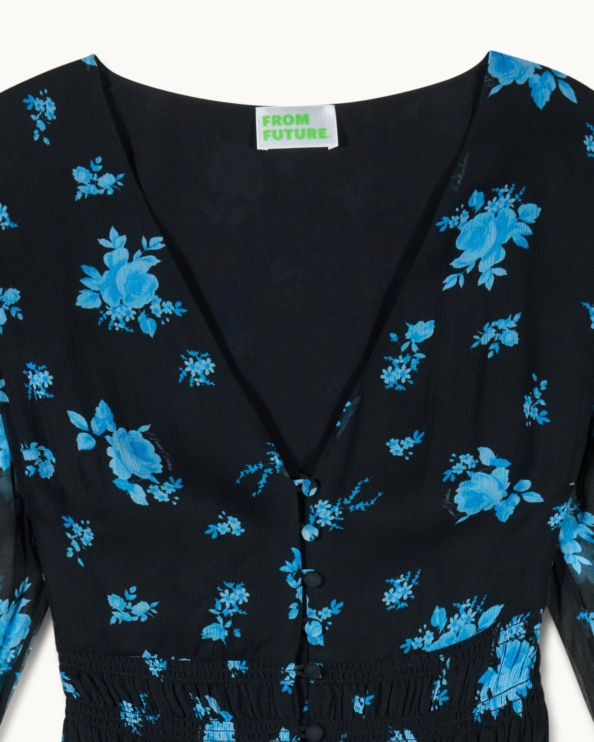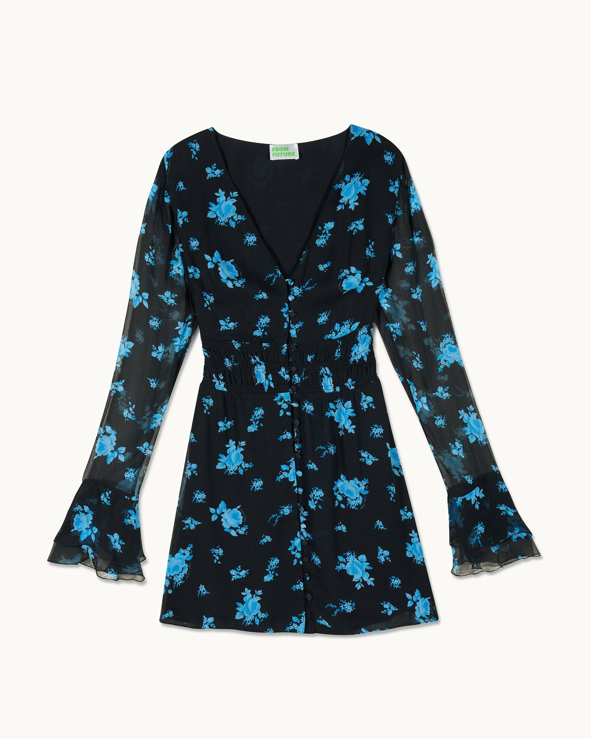 Adorned with a floral print, this short dress adds a fresh touch to your seasonal wardrobe. Its smocked waist, V-neckline, and sheer long sleeves create a flattering and on-trend look.