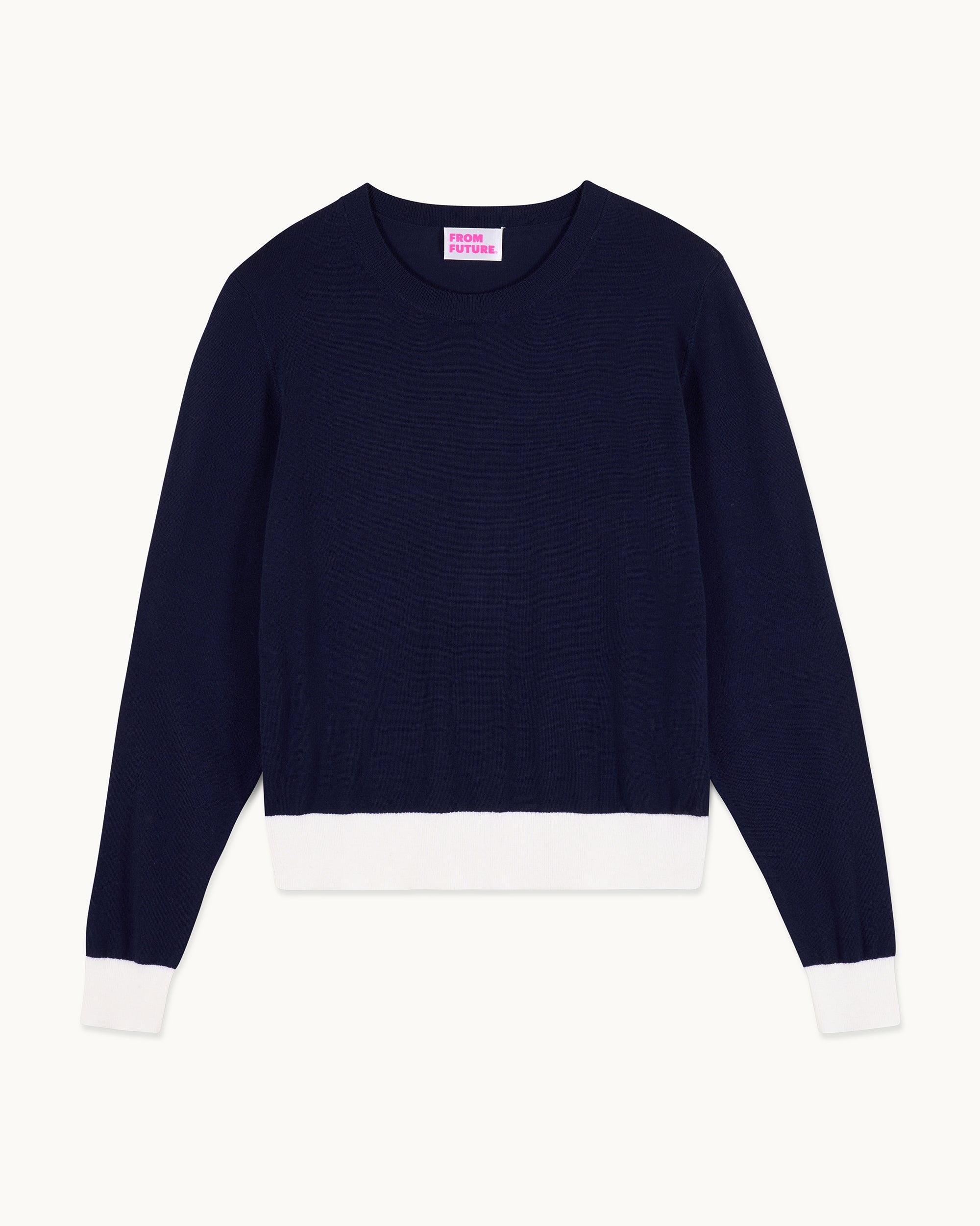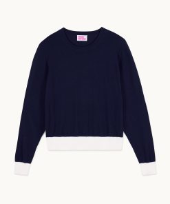Crafted from 2-ply merino wool, this sweater creates a cropped silhouette with a contrasting ribbed hem. Its crew neck and long sleeves make it a versatile piece, perfect for pairing with relaxed jeans or a tailored skirt.