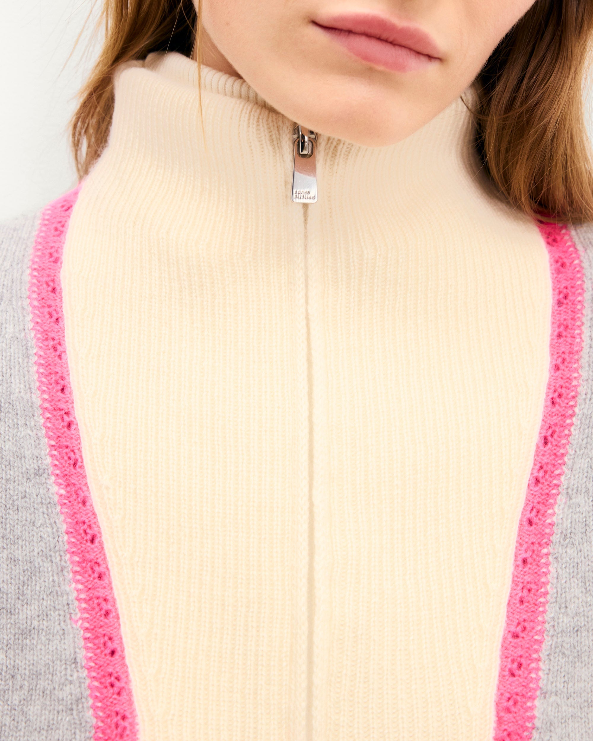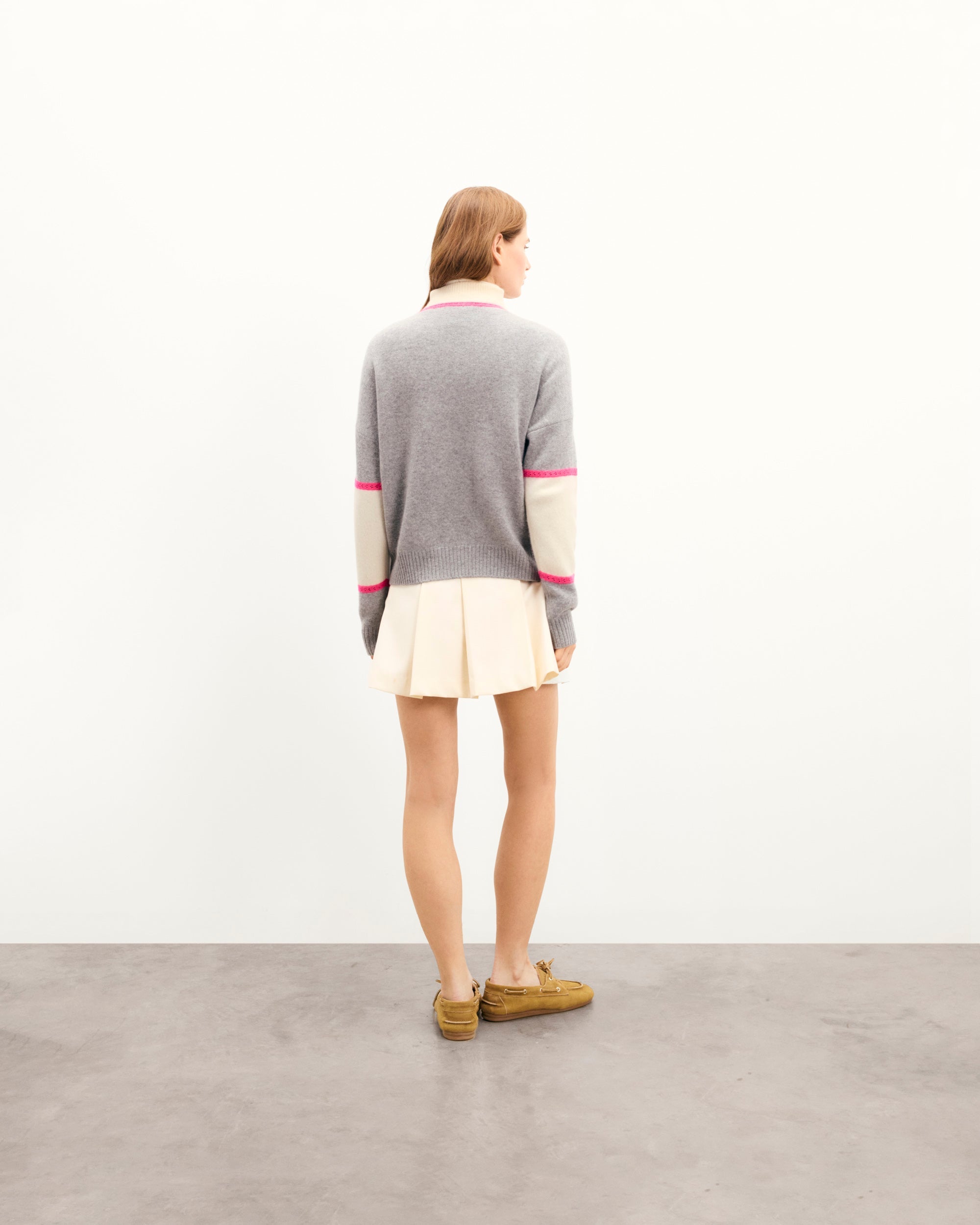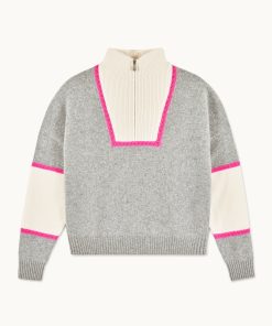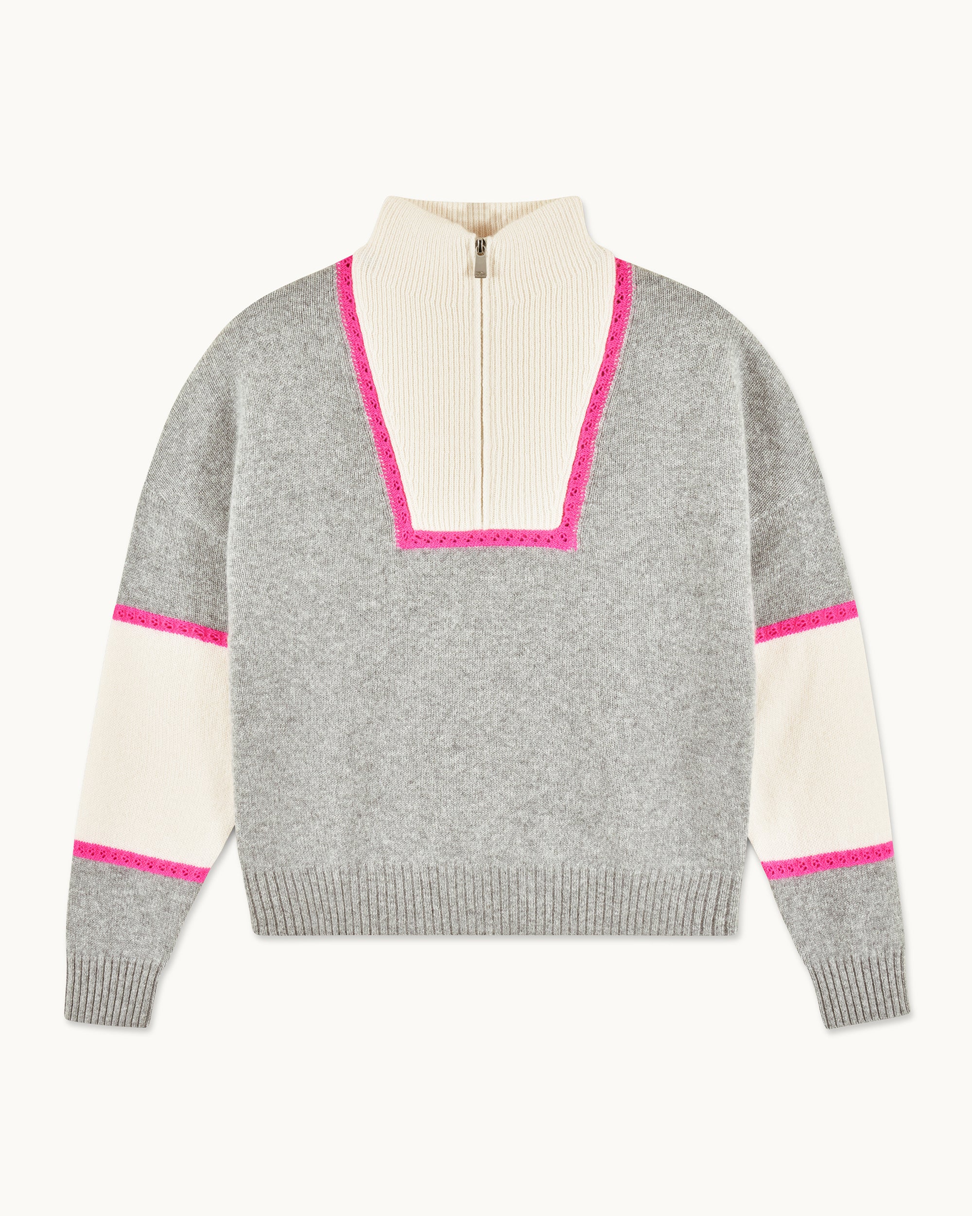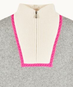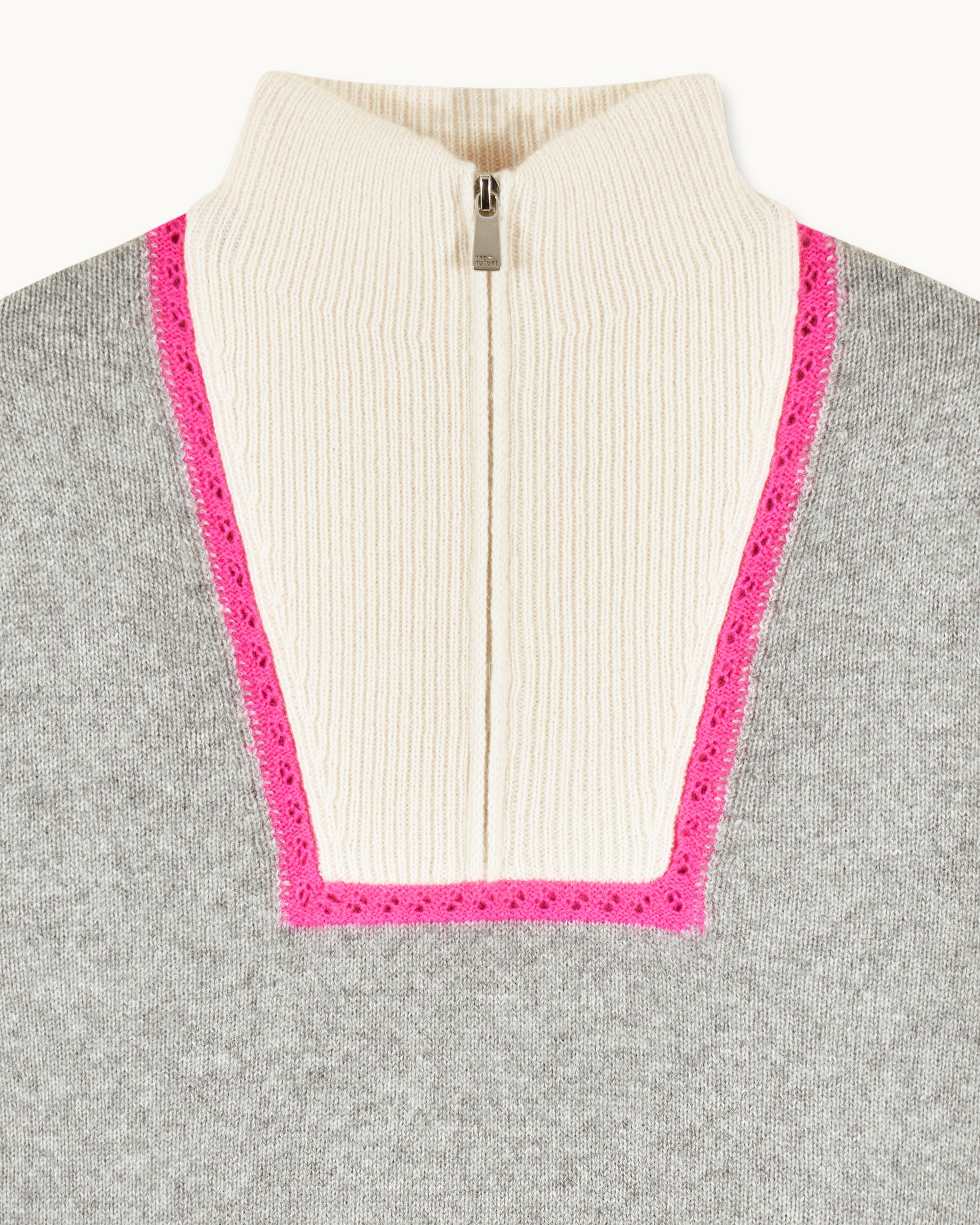Twist your seasonal wardrobe with this 4-ply cashmere sweater adorned with contrasting two-tone details. Its long sleeves and quarter zip neck create a sleek, streamlined silhouette.
