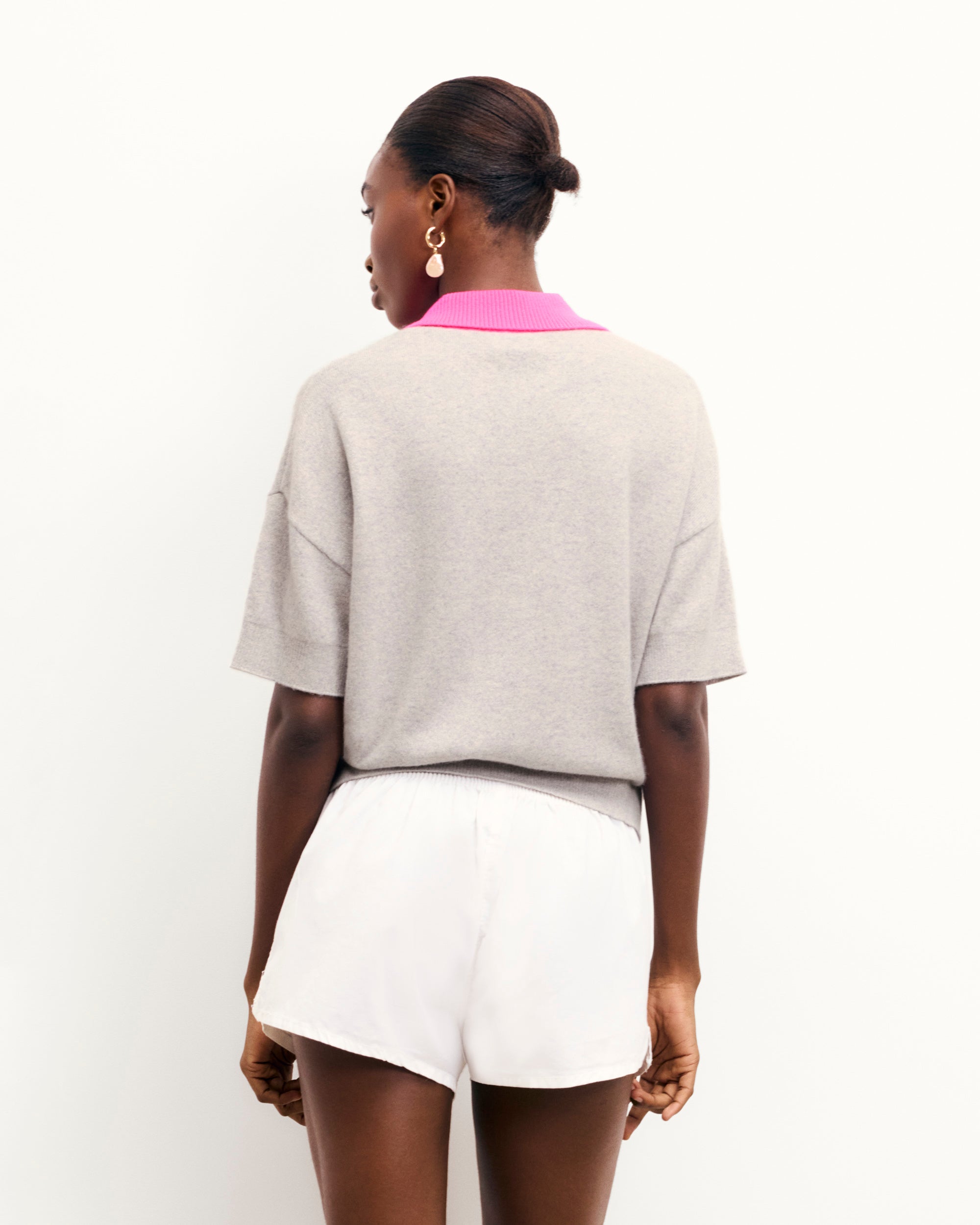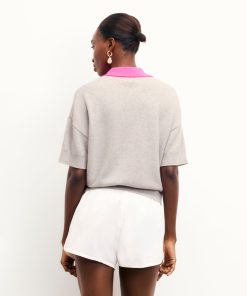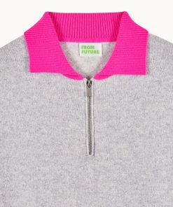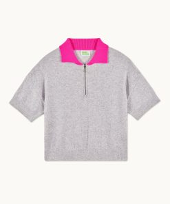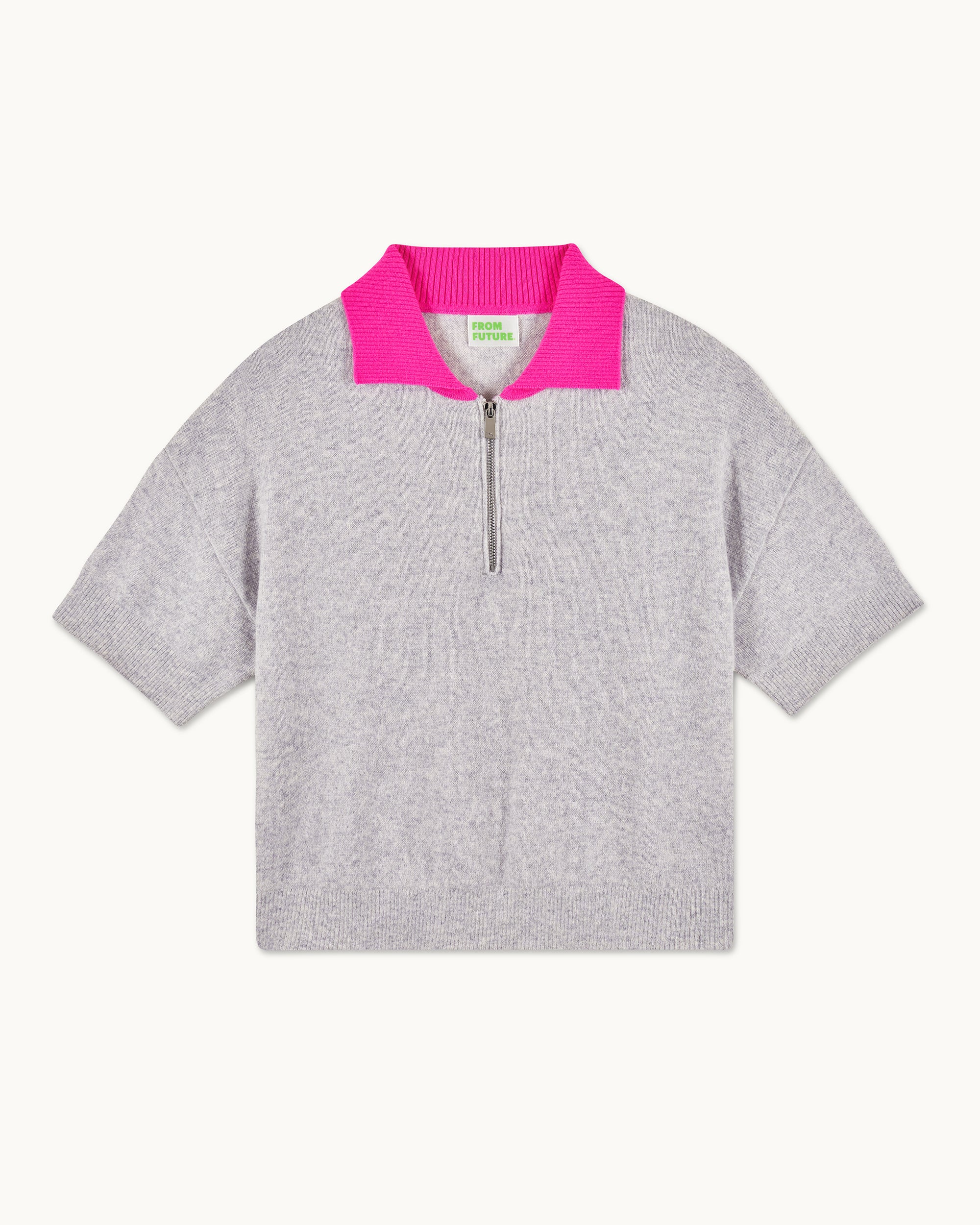 From Future Women’s Tops Two-tone Short Sleeve Polo Neck Sweater | Gris Chine Clai