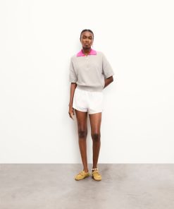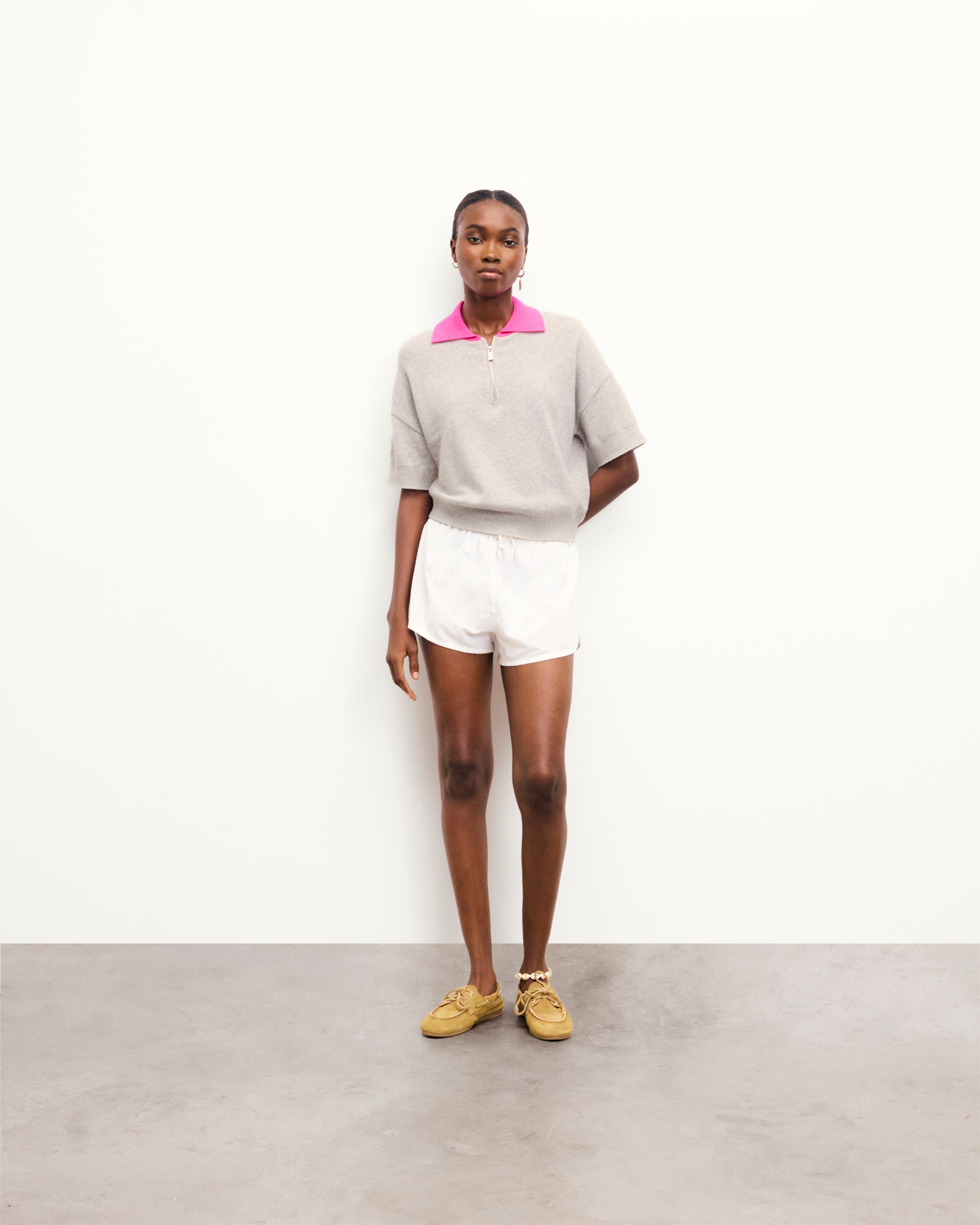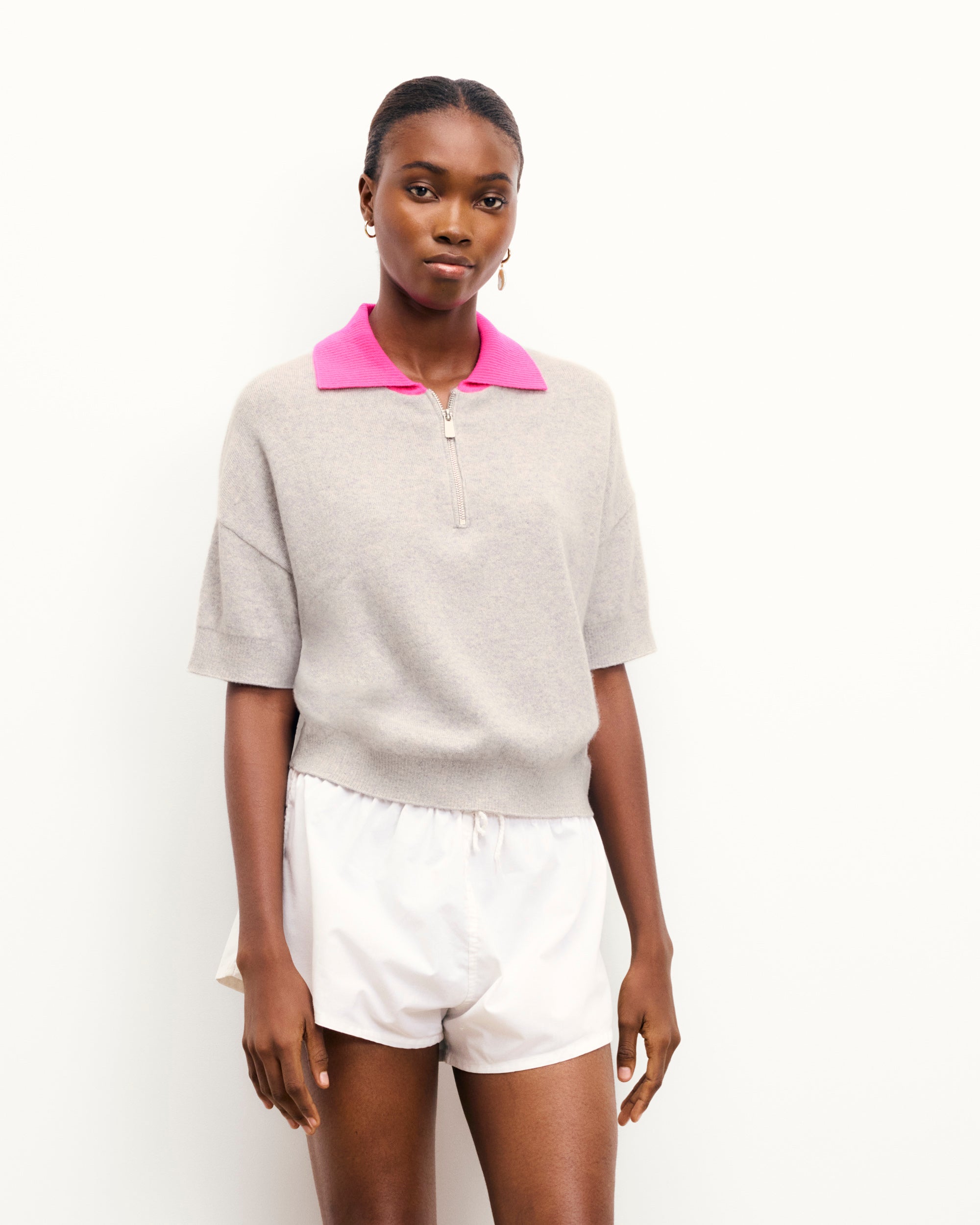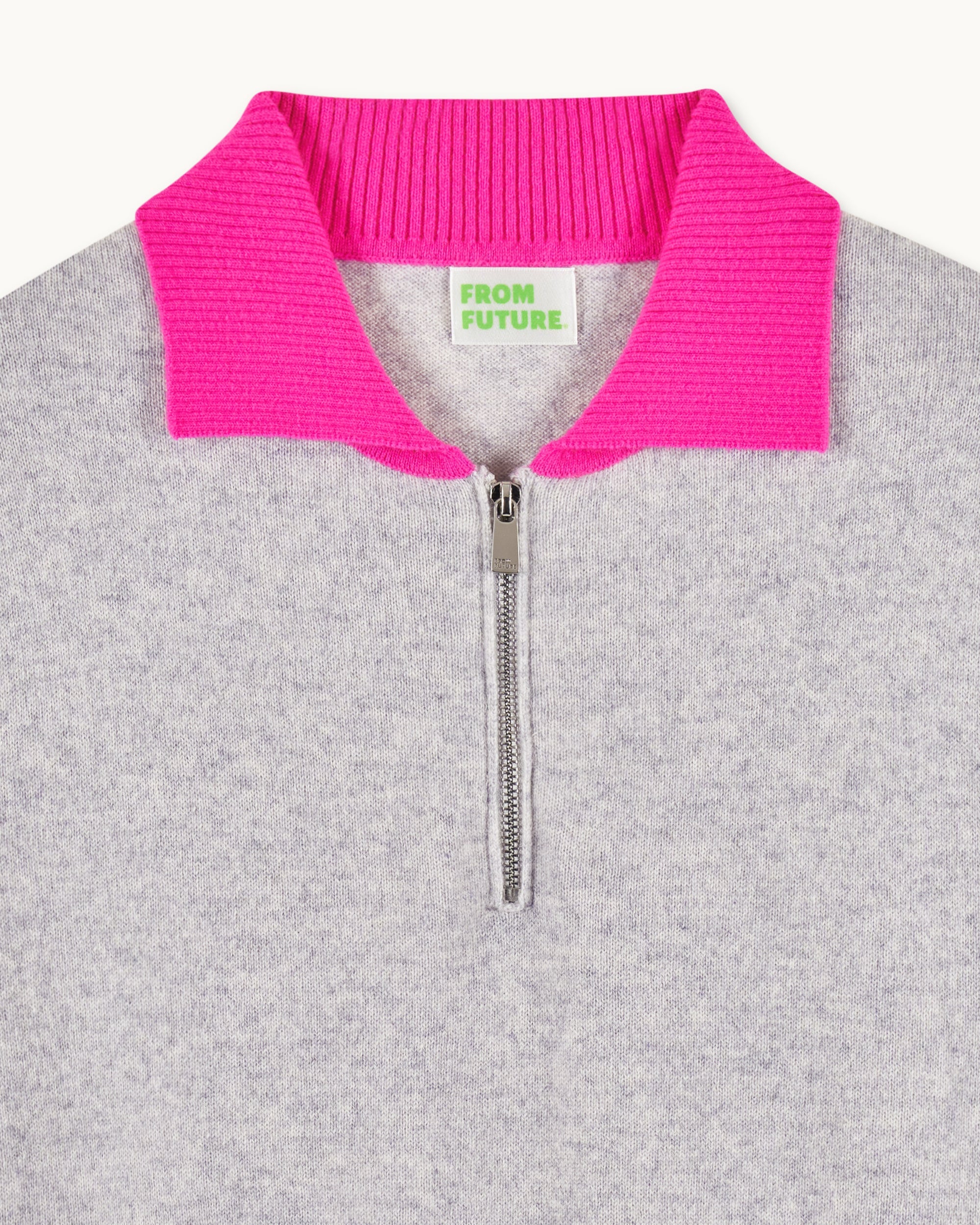 From Future Women’s Tops Two-tone Short Sleeve Polo Neck Sweater | Gris Chine Clai